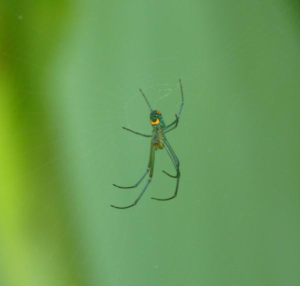 Small Spider With Bright Green Abdomen : Many other spiders have spinnerets, but they are very.